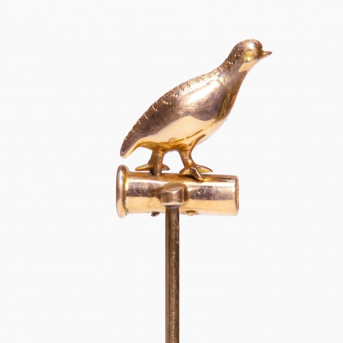 Add a touch of nature-inspired elegance to your collection with the antique gold enamel bird cartridge stick pin.