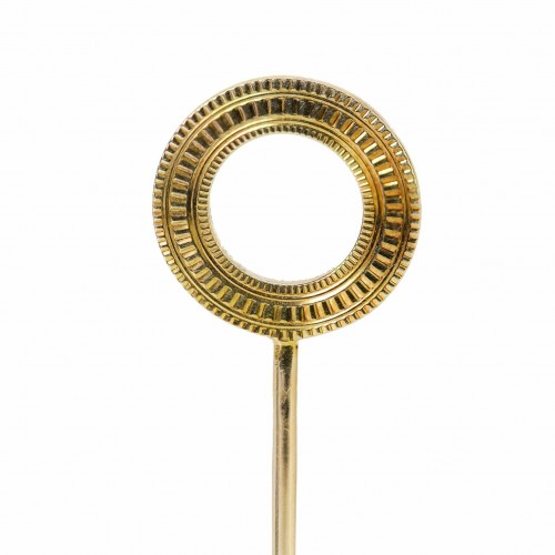 Discover the perfect blend of simplicity and elegance with the antique gold enamel circle stick pin.