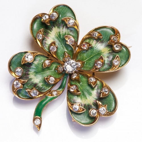 Be the first to review “Antique Gold Enamel Diamond Clover Brooch” Cancel reply