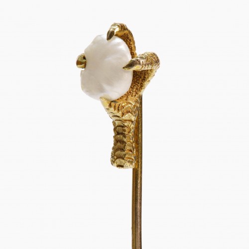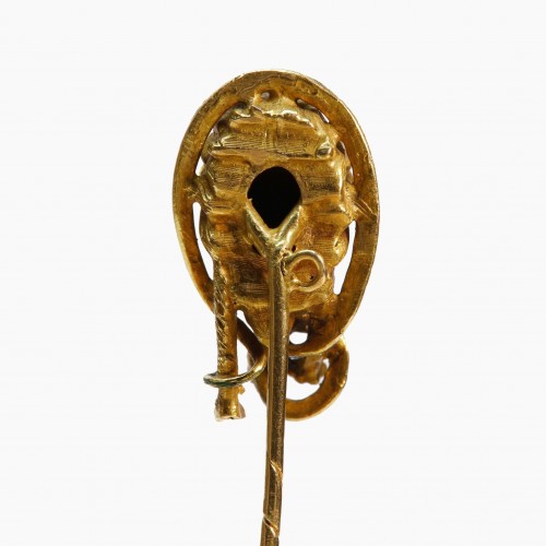 Antique Gold Enamel Lion Snake Ruby Stick Pin