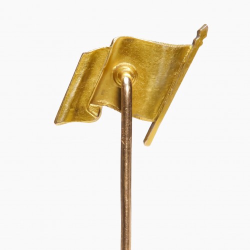 Show your patriotism with a touch of elegance through the antique gold enamel USA flag stick pin.