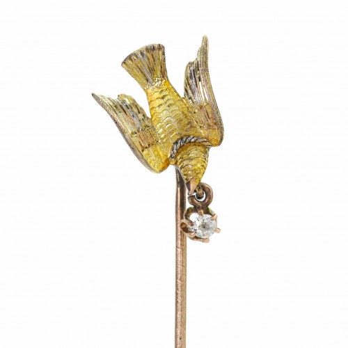 Antique Gold Freshwater Pearl Demantoid Snake Stick Pin