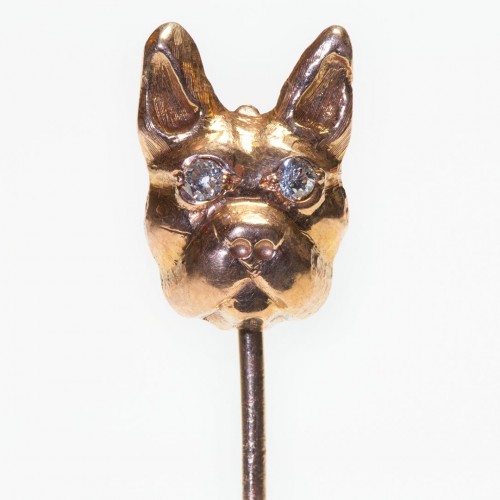 Antique 19th Century Chrysolite Silver Toped Gold Falcon Stick Pin