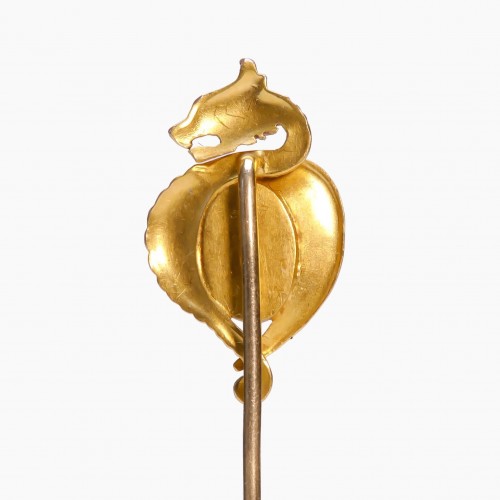 Discover a touch of mythical elegance with this antique gold opal griffin stick pin.
