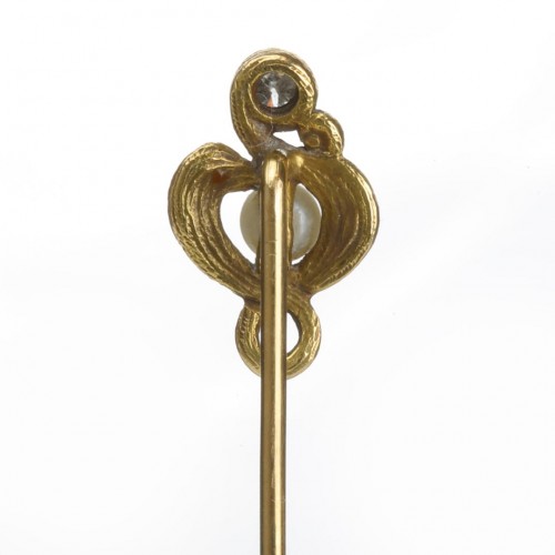 Elevate your style with this stunning antique gold pearl diamond stick pin.