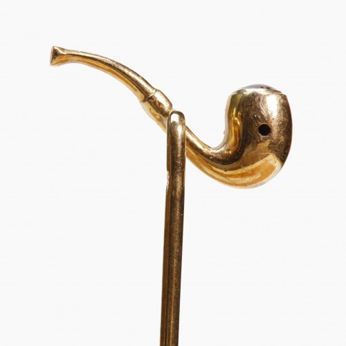 Crafted in gold, this stick pin blends historical elegance with whimsical sophistication. Its unique design and rich detailing make it an exceptional choice for those who appreciate refined and unique accessories.