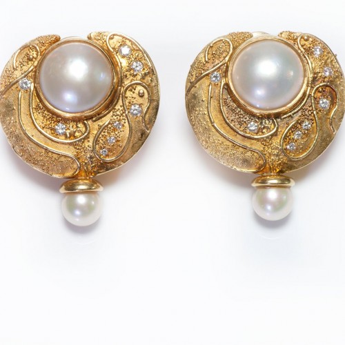 Antique Gold Pearl Onyx Cameo Brooch