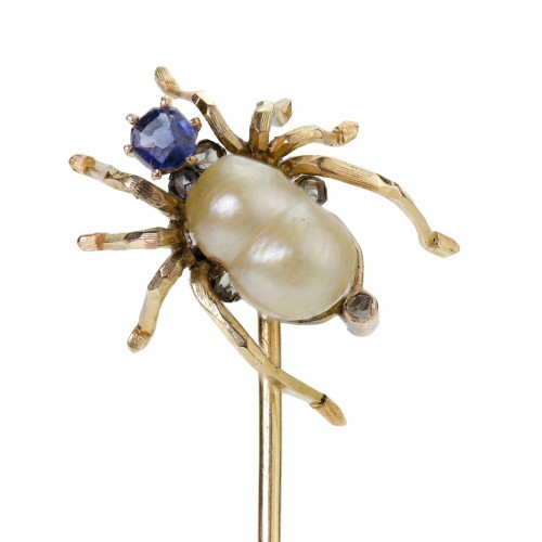 Embrace the allure of the exotic with this antique gold pearl ruby snake stick pin.