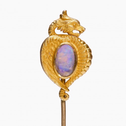 Crafted in antique gold, this stick pin blends timeless sophistication with a pop of color, making it a distinguished accessory for any collection.