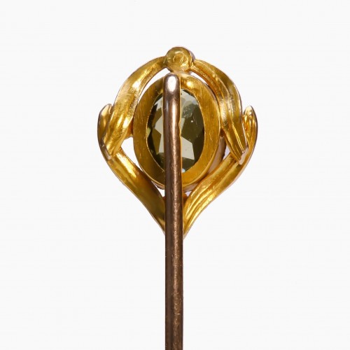 Discover the elegance of this antique gold peridot pearl stick pin.