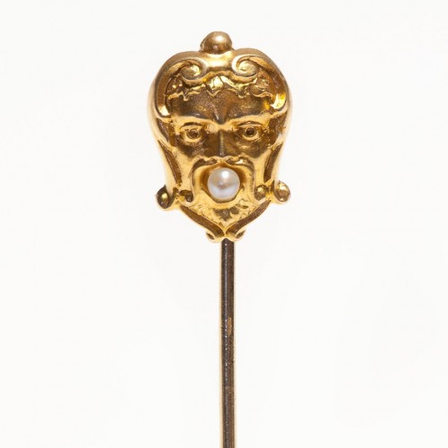 Antique Gold Pietra Dura Stick Pin Floral Mosaic