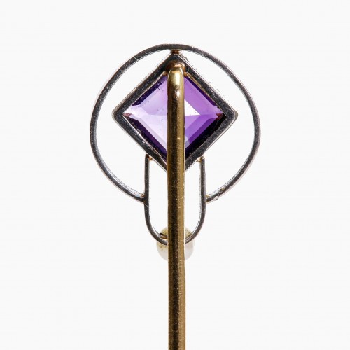 Antique Gold Platinum Amethyst Pearl Stick Pin