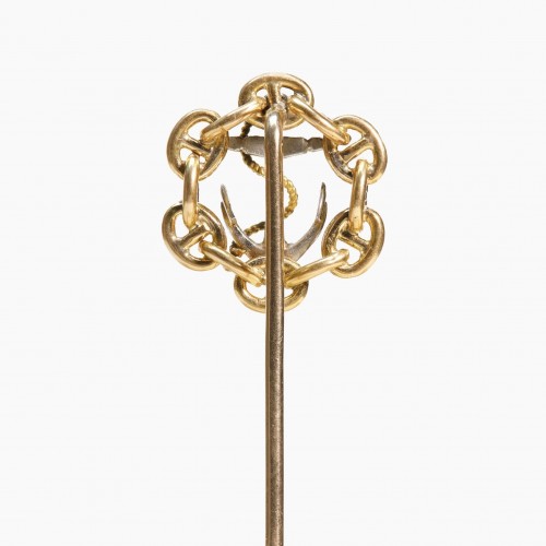 Elevate your accessory collection with this antique gold platinum anchor chain stick pin, a perfect blend of nautical charm and refined elegance.