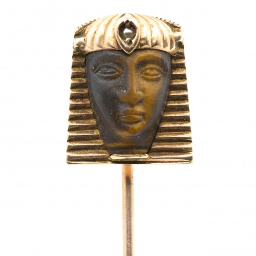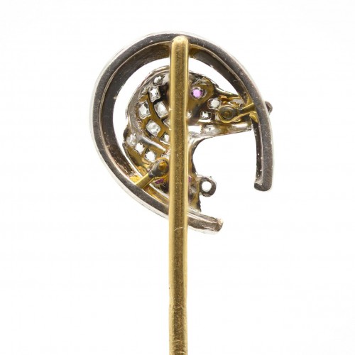 A rare find, this stick pin is a testament to the skill and creativity of early 20th-century jewelry artisans, making it a perfect piece for collectors and dog lovers alike. An elegant accessory with both whimsy and elegance, it brings together precious metals and stones in a unique celebration of canine charm.