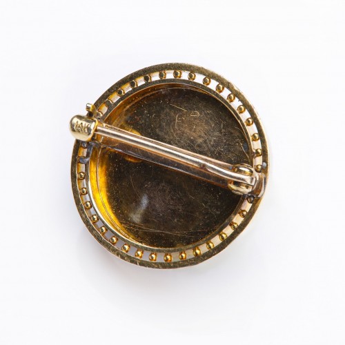 Marcus & Co. Antique 18K Gold Amethyst Diamond Enamel Brooch