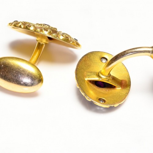 Antique Gold Ruby Diamond Cufflinks.