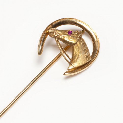 Antique Gold Ruby Equestrian Horseshoe Stick Pin