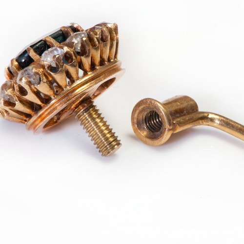 Discover elegance with this antique gold sapphire diamond detachable stick pin.