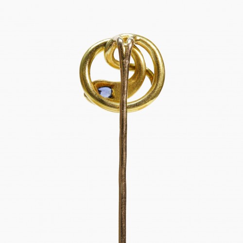 Unveil a touch of mystique with the antique gold sapphire snake stick pin.