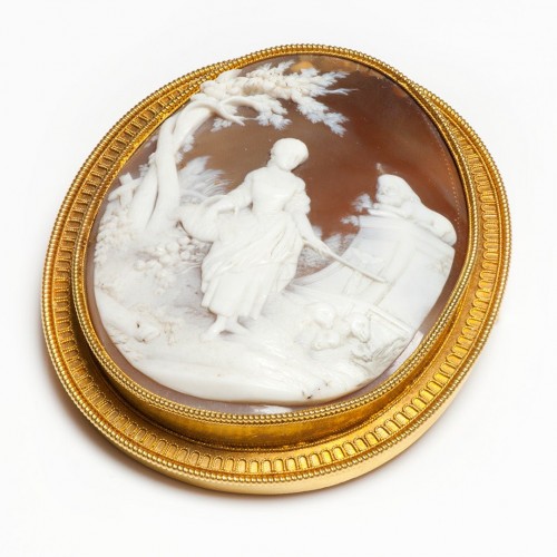 Antique Gold Shell Lady Lion Cameo Pendant Brooch.
