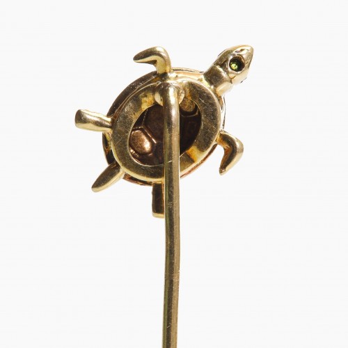 Dive into a world of timeless elegance with the antique gold enamel turtle stick pin.
