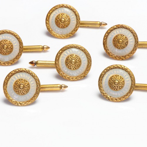 Antique Marcus & Co. Art Nouveau Gold Enamel Studs