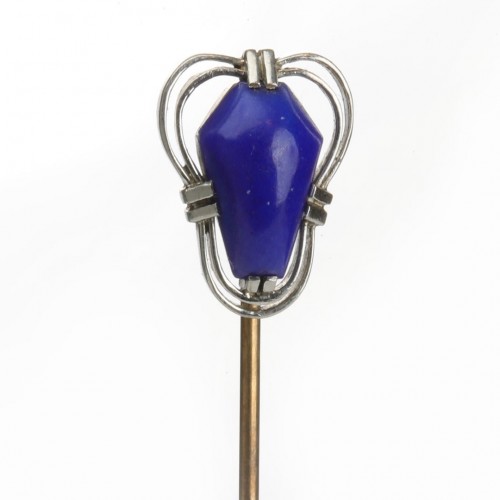 This antique platinum and gold stick pin is a stunning example of antique elegance, featuring a striking blue lapis lazuli stone.