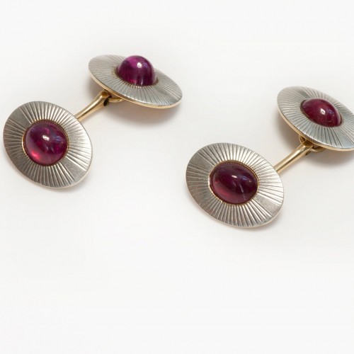 Antique Platinum & Gold Burma Ruby Cufflinks – No Heat Cabochon Rubies