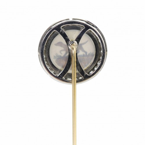 Featuring a unique reverse crystal design, this stick pin is set in gold and accented with dazzling diamonds.