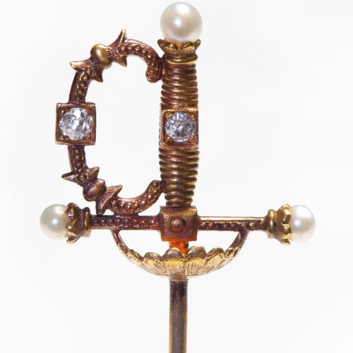 Elevate your collection with this antique silver gold old mine cut diamond snake stick pin.