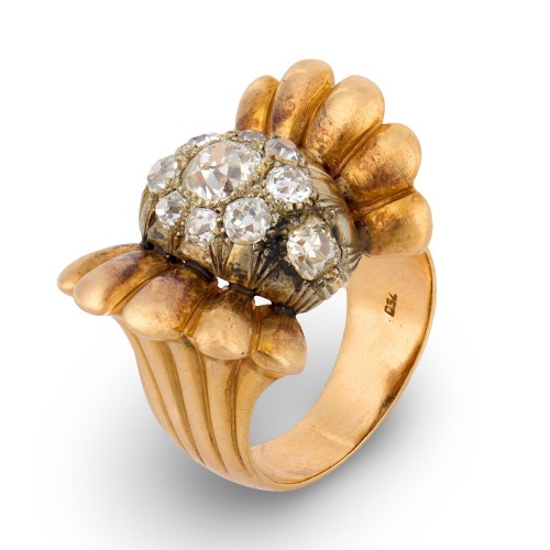 Dating to the 1930s, this ring reflects a period defined by innovation, symmetry, and enduring style. Elegant, distinctive, and quietly bold, it is a piece that appeals to those who appreciate vintage jewelry with strong design, history, and timeless appeal.