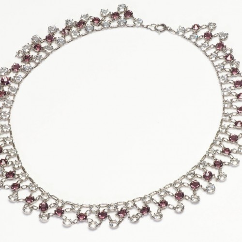Art Deco 1920’s Sterling Silver Pink Paste Crystal Lace Collar Necklace
