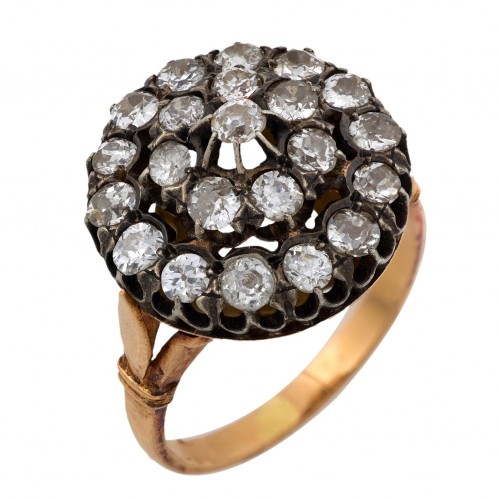 Retro 25.40 carat amethyst diamond 14k yellow gold cocktail ring