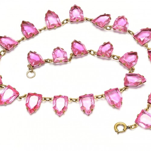 Art Deco Czech Pink Paste Riviere Chain Necklace