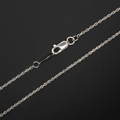 Pendant measures 31.4 x 23.2mm. Hangs from a 15 inch rope chain.