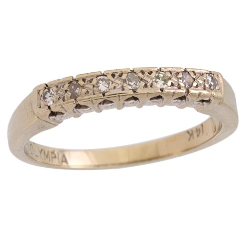 This Art Deco platinum wedding band gleams with nine finely set single cut diamonds, offering delicate brilliance and enduring elegance. Crafted in the 1930s, its clean lines and refined detail embody the sophistication of the era—an effortlessly timeless symbol of commitment.