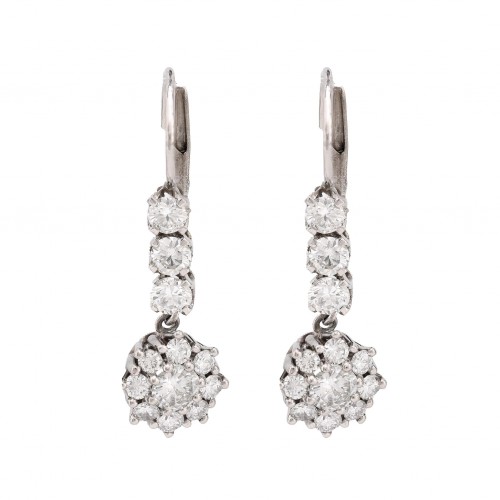 These Art Deco-inspired chandelier earrings feature 8 carats of dazzling diamonds, elegantly set in 18k white and yellow gold. A statement of timeless luxury and bold sophistication.