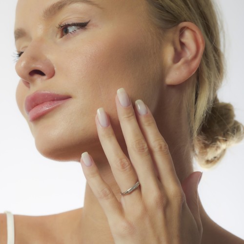 This Art Deco platinum ring combines French, round brilliant, and baguette cut diamonds in a geometric arrangement that embodies 1930s elegance. With softly shimmering diamonds and streamlined design, it offers a refined statement of vintage sophistication.