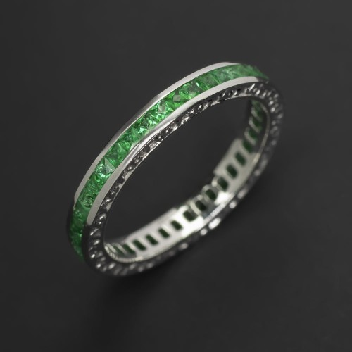 – Eternity ring design with emeralds continuing all the way around