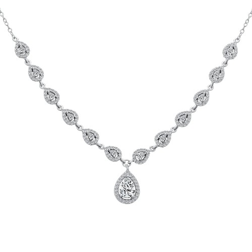 Art Deco Swirl Leaf Choker Collar Necklace with Teardrop CZ