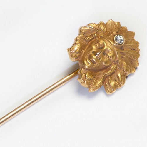 Art Nouveau Gold Diamond Native American Chief Stickpin