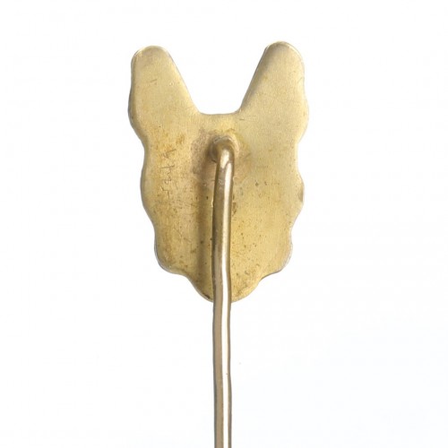 he Art Nouveau gold enamel diamond dog stick pin captures the playful elegance of the era with its charming dog motif.
