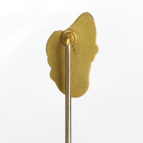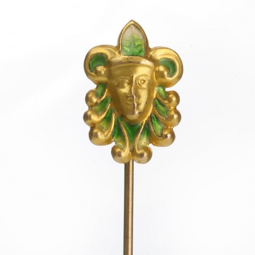 The Art Nouveau gold lady bonnet stick pin captures the essence of early 20th-century elegance with its graceful design.