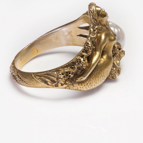 Art Nouveau Gold Mermaid Fresh Water Pearl Ring
