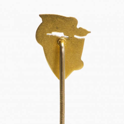 The Art Nouveau gold pearl griffin shield stick pin features a majestic griffin motif set against a gold shield, with a lustrous pearl adding a touch of elegance.