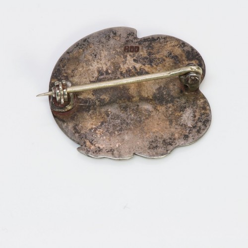 Art Nouveau lady matt enamel 800 silver brooch pin.
