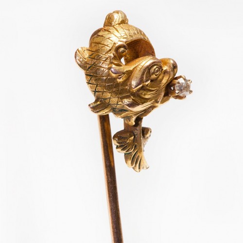 Art Nouveau Yellow Gold Diamond Griffin Stick Pin