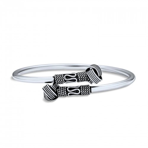 Balinese Flower Bangle Bracelet in Oxidized Sterling Silver