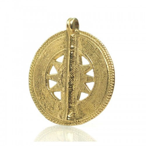 Baoule Authentic Hand Cast Brass Beads Necklace Medium with Classic Sun Disc Shapes Punched Holes and CLASSIC ASANTE GOLD WEIGHT MOTIF DESIGNS