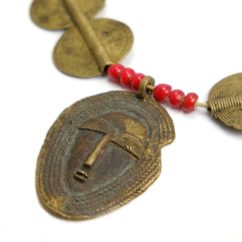 Baoule Authentic Hand Cast Brass Beads Necklace Medium with Classic Sun Disc Shapes Punched Holes and CLASSIC ASANTE GOLD WEIGHT MOTIF DESIGNS